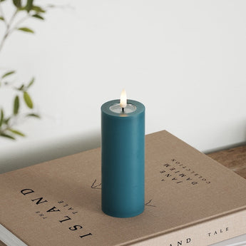 Αυτό το κομψό φως LED μπλοκ στο Πετρόλ Προσφέρει ένα πραγματικό αποτέλεσμα «πραγματικής φλόγας» που είναι τόσο ζωντανό όσο ένα πραγματικό κερί. Με ύψος 12,5 cm και διάμετρο 5 cm, κάθε φως LED μπλοκ είναι προσεκτικά κατασκευασμένο από κεριά και ρητίνη, εξοπλισμένη με μια ζωντανή 3D φλόγα και μια μοναδική επίστρωση ρητίνης στην κορυφή. Αυτός ο συγκεκριμένος συνδυασμός όχι μόνο δημιουργεί ένα αυθεντικό συναίσθημα, αλλά και δίνει το χαρακτηριστικό «υγρό βλέμμα» που μιμείται τα λιωμένα κεριά τέλεια.