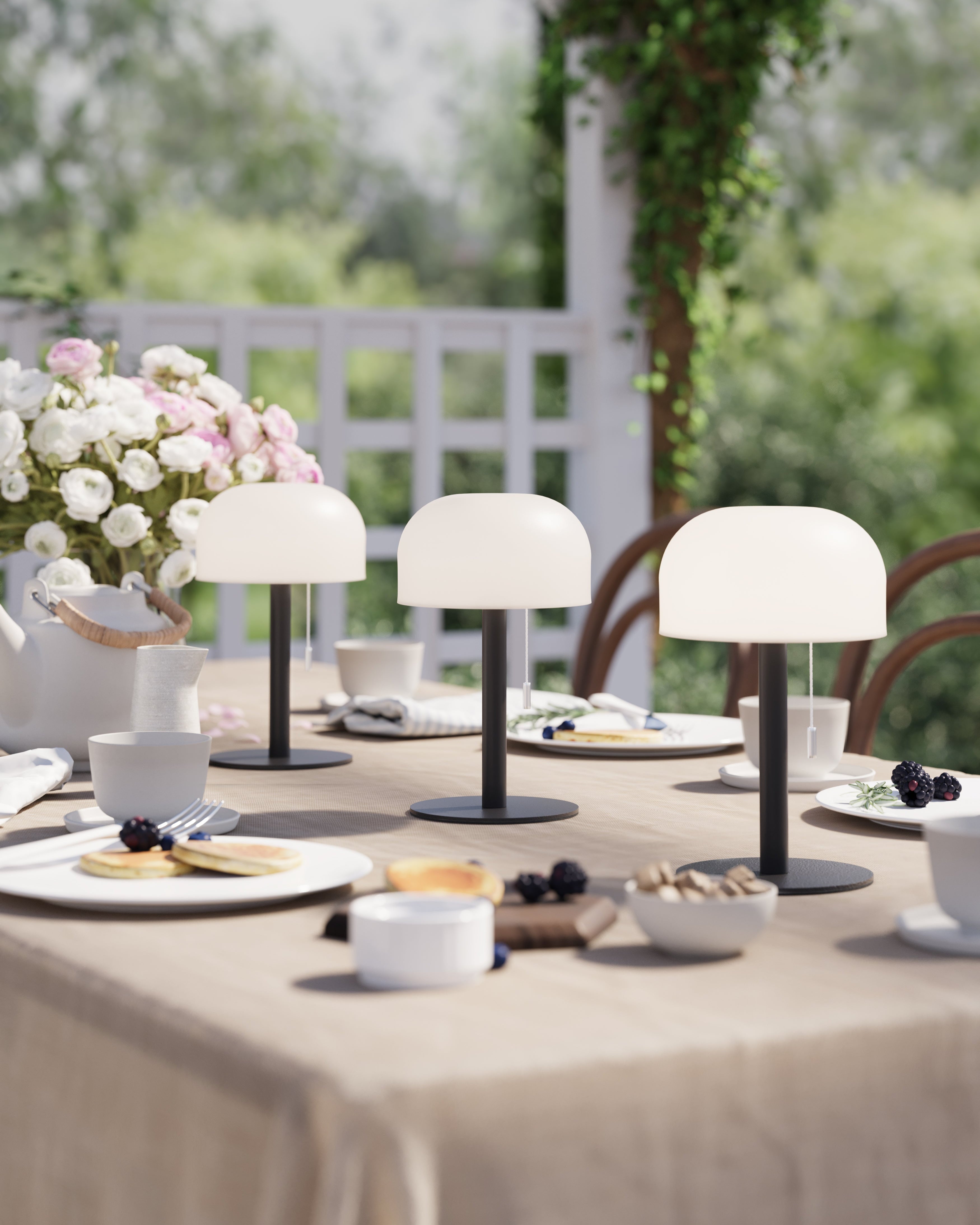 Con la sua certificazione IP44, la lampada è anche adatta per l'uso esterno, in modo da poter godere della luce evocativa sul balcone, nel giardino o sotto il cielo aperto.