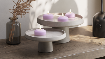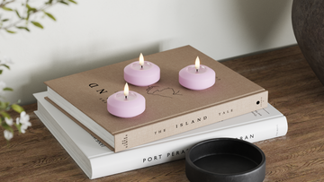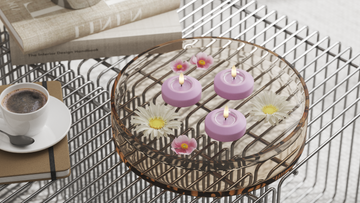 Set Floating candle in a bowl of water and a few green sprigs for a calm, floating expression.