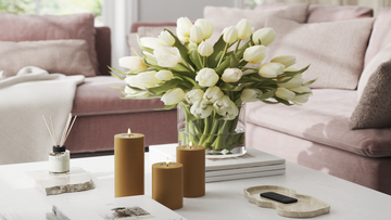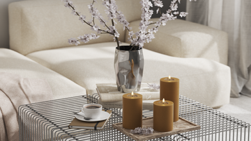One Pillar candle is a simple way to create coziness - especially nice when several lights are gathered together.