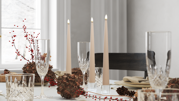 This LED Shiny Dinner candle combines the best of two worlds - the atmospheric lighting from traditional candles and the modern LED-The technology security. It is perfect for all homes, especially if you have children or pets as you get all the fun without the risk of open fire. Since it does not produce soot or us, it also contributes to a healthier indoor climate.
