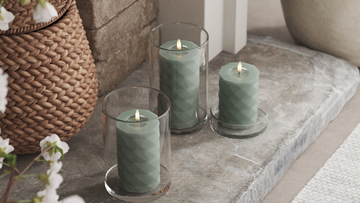LED Square Pillar candle in the color sage green.