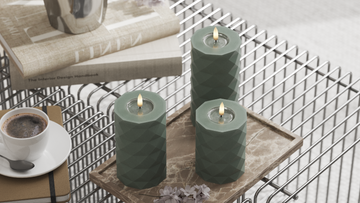 This elegant LED Square in Sage Green Offers a real-life 'real flame' effect that is as lifelike as a real candle. With a height of 10 cm and a diameter of 7.5 cm each is LED Square Carefully made of candles & resin, equipped with a lifelike 3D flame and a unique coating of resin at the top. This particular combination not only creates an authentic feeling, but also gives the distinctive 'wet look' that mimic melted candles perfectly.
