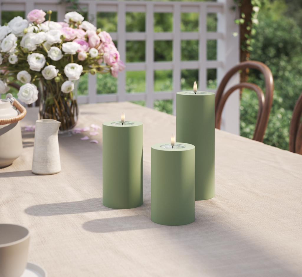 Outdoors LED Pillar candle Ø 7.5 x 20 cm Dusty Green