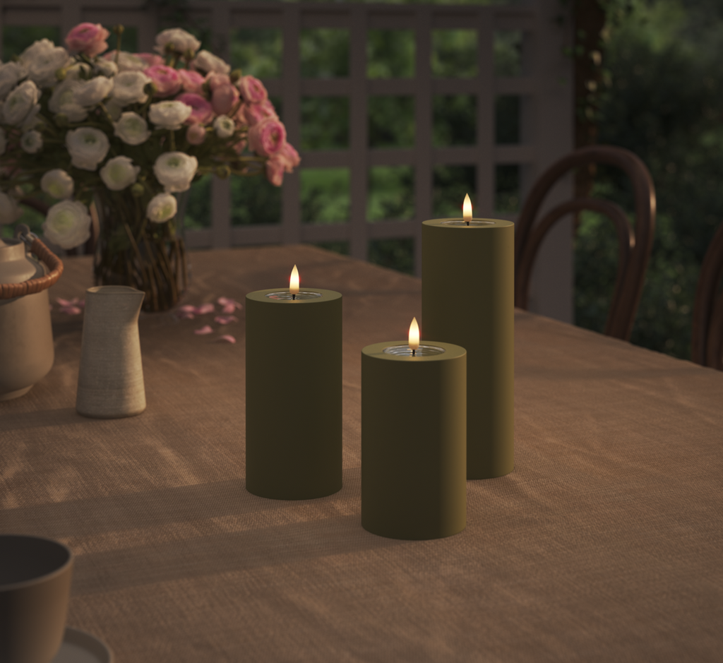 Utomhus LED Blockljus Ø 7,5 x 12,5 cm Olivgrön